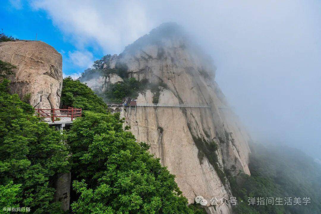但第二天又在栈道上发了朋友圈:征服五朵山,征服自己。