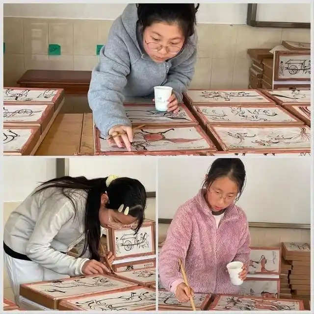 创作中,孩子们不拘泥于古法复刻,在保留魏晋画像砖质朴典雅底色的同时,融入杭州地域文化温润气息。一砖一马一风骨,或扬蹄奔腾尽显豪迈,或缓步徐行暗藏灵动,交领宽袖的牧马少年眉眼间尽是魏晋士人特有的洒脱。
