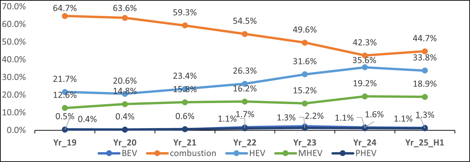日本市场不同动力车型注册量对比,来自JATO Dynamics官网
