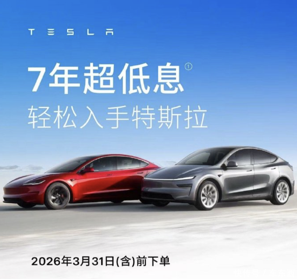打响2026年中国车市7年低息第一枪的特斯拉,也在今日官宣将7年低息、5年免息政策延续到3月31号,这些举动把开年车市价格战引向高潮。
