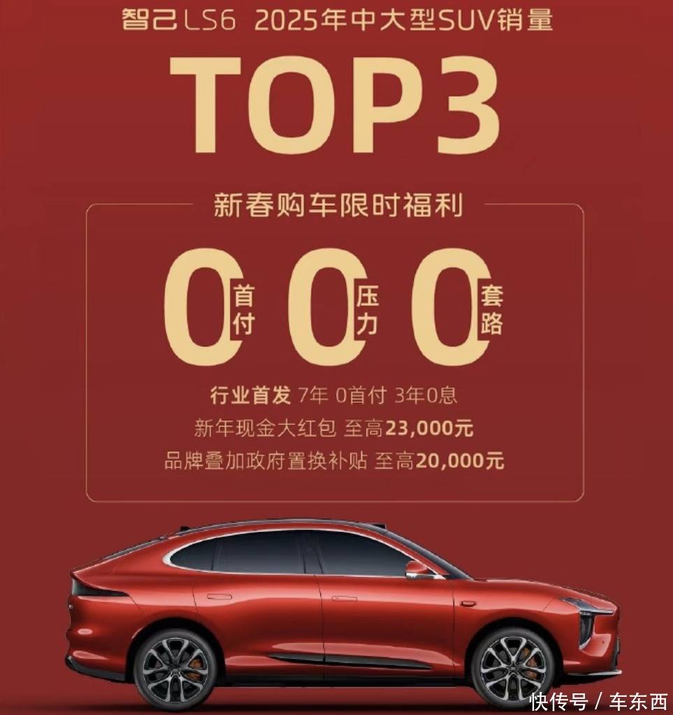 智己汽车也在同一天推出“7年0首付”、“3年0息”的金融方案,叠加新年现金红包至高2.3万元,新一代智己LS6限时售价19.49万元起。