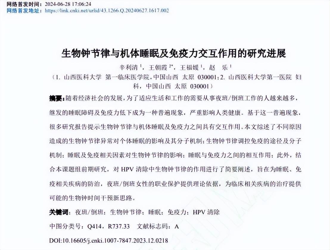 参考资料:[1]辛利清. 生物钟节律与机体睡眠及免疫力交互作用的研究进展 , 生命科学研究 ,2024-06-28