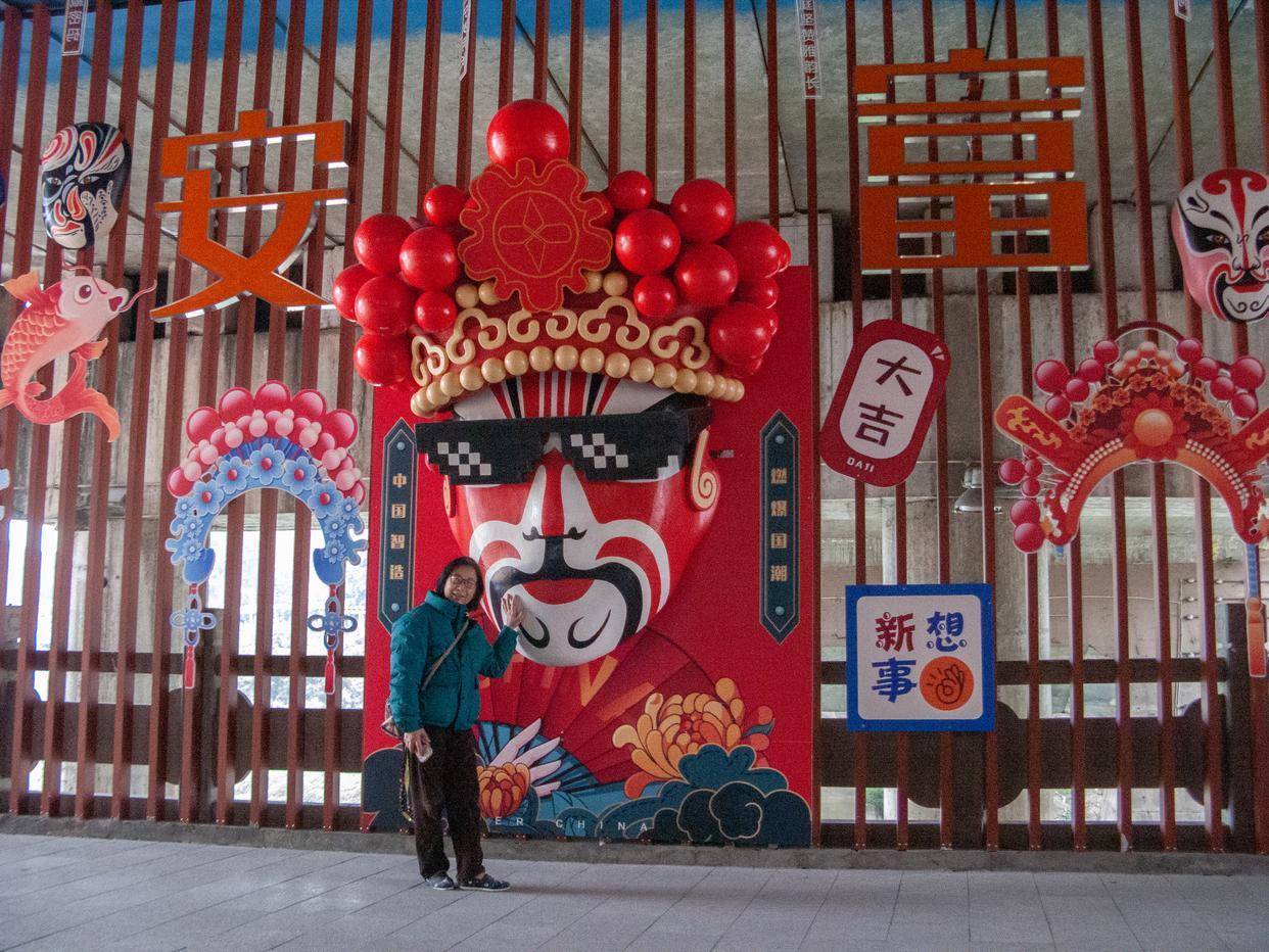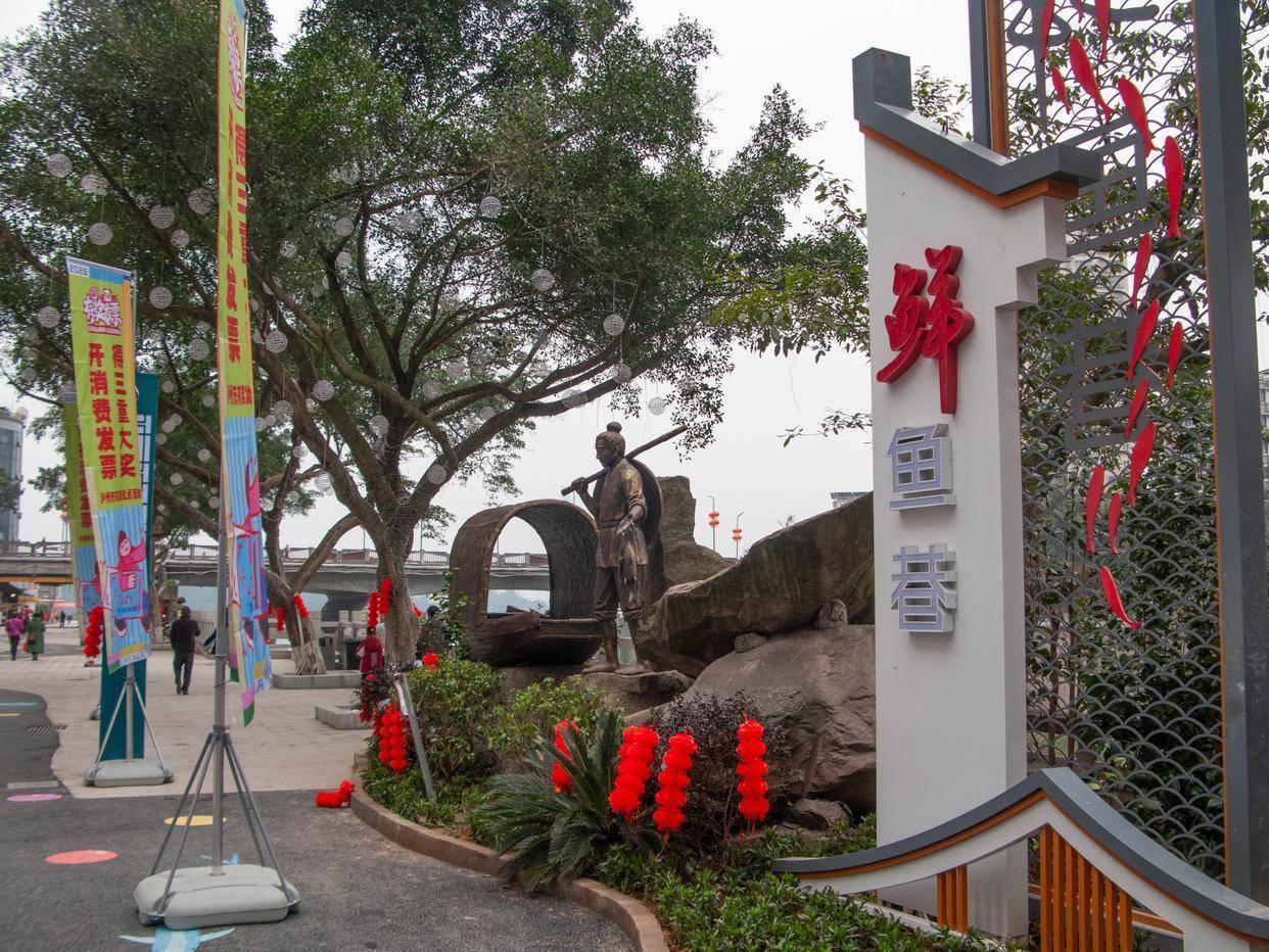 “打渔人”主题雕塑新桥的桥洞现在也焕然一新,顶上是一群群红鱼灯笼,左边是一家氛围餐馆,右边则是巨大的“安富”国潮打卡墙,每个人经过这里都忍不住拍照留念。
