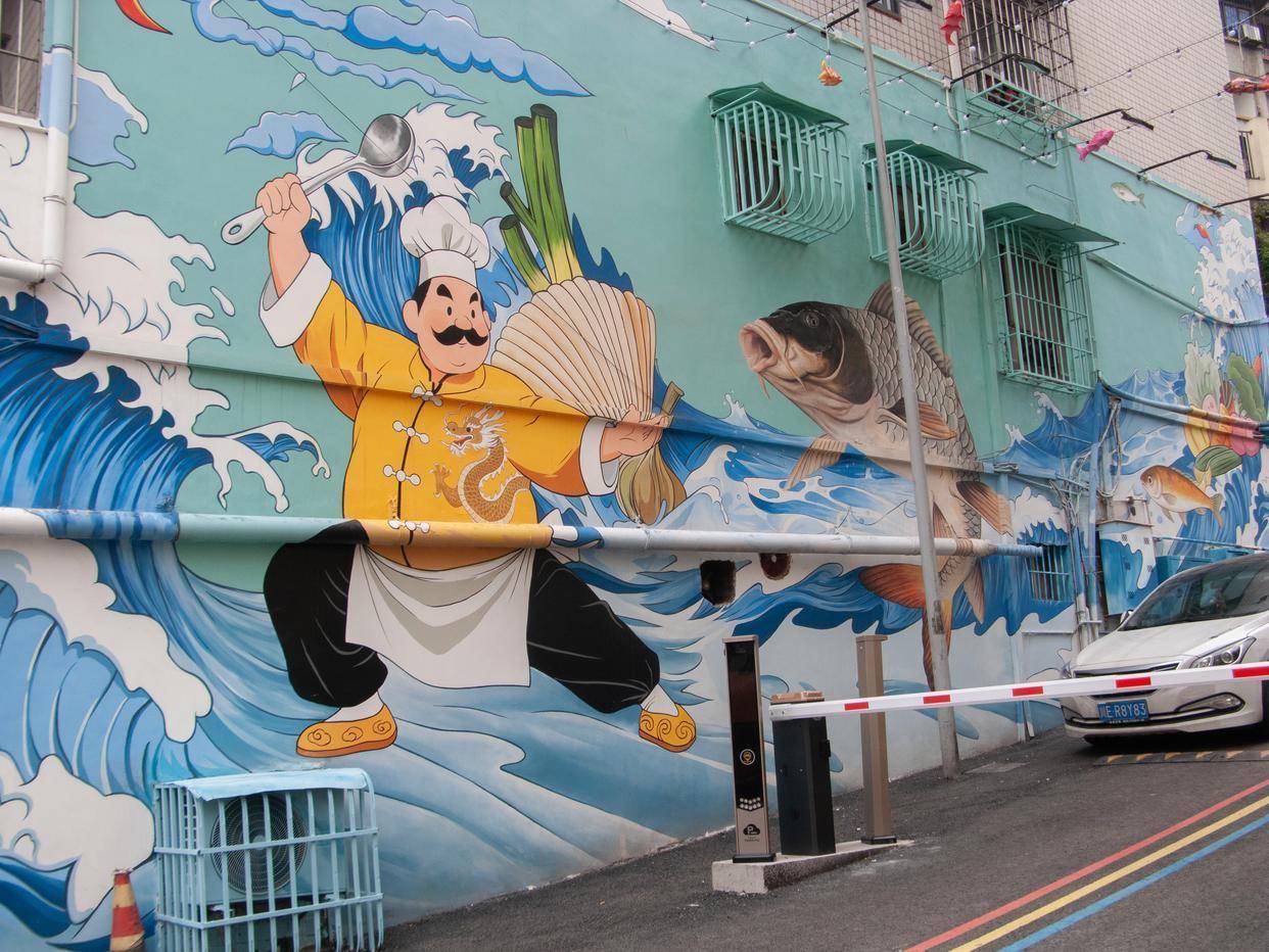 一路上看过来,每幅彩绘各有千秋,而且都紧扣“鲜鱼巷”的名字。但是如果一定要选一张最好的,那“厨师决斗鲤鱼”的那幅画是当之无愧的第一名。